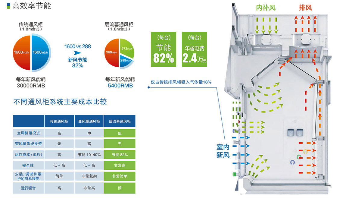 對排風柜內部氣流組織進行千次模擬,自主研發的產品;不但加速有害氣體的排出,同時減少了排風柜的總排風量。
